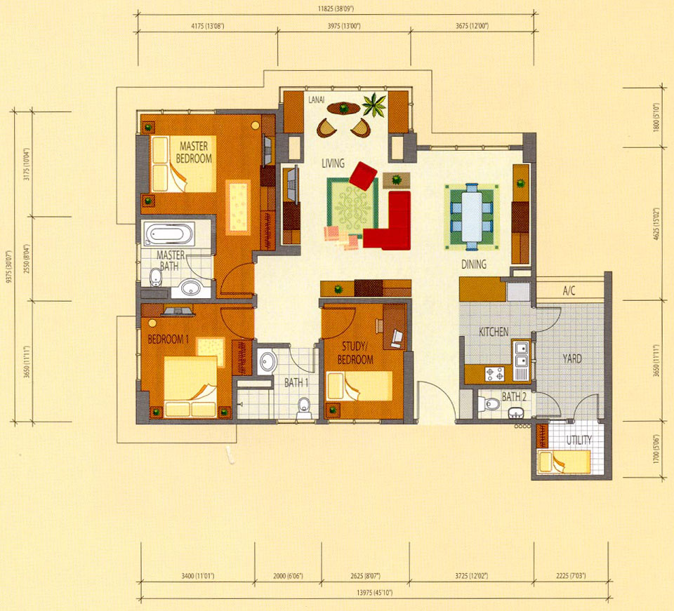 - 2+1 bed, 3 bath, lanai, balcony & alcove